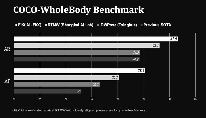 相比之下,FitX的输出更精细,能够覆盖全身、手部乃至面部的总共133个关键点,支持手势与表情联动控制。这种精细度,使其在COCO-WholeBody等权威数据集上的精度达到了世界第一。